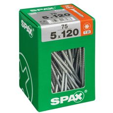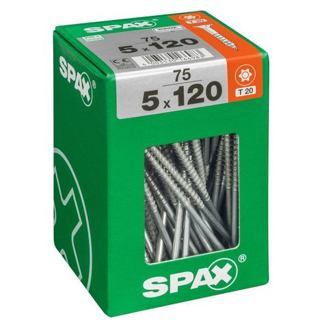 Lot de 75 vis acier tête plate SPAX, Diam.5 mm x L.120 mm