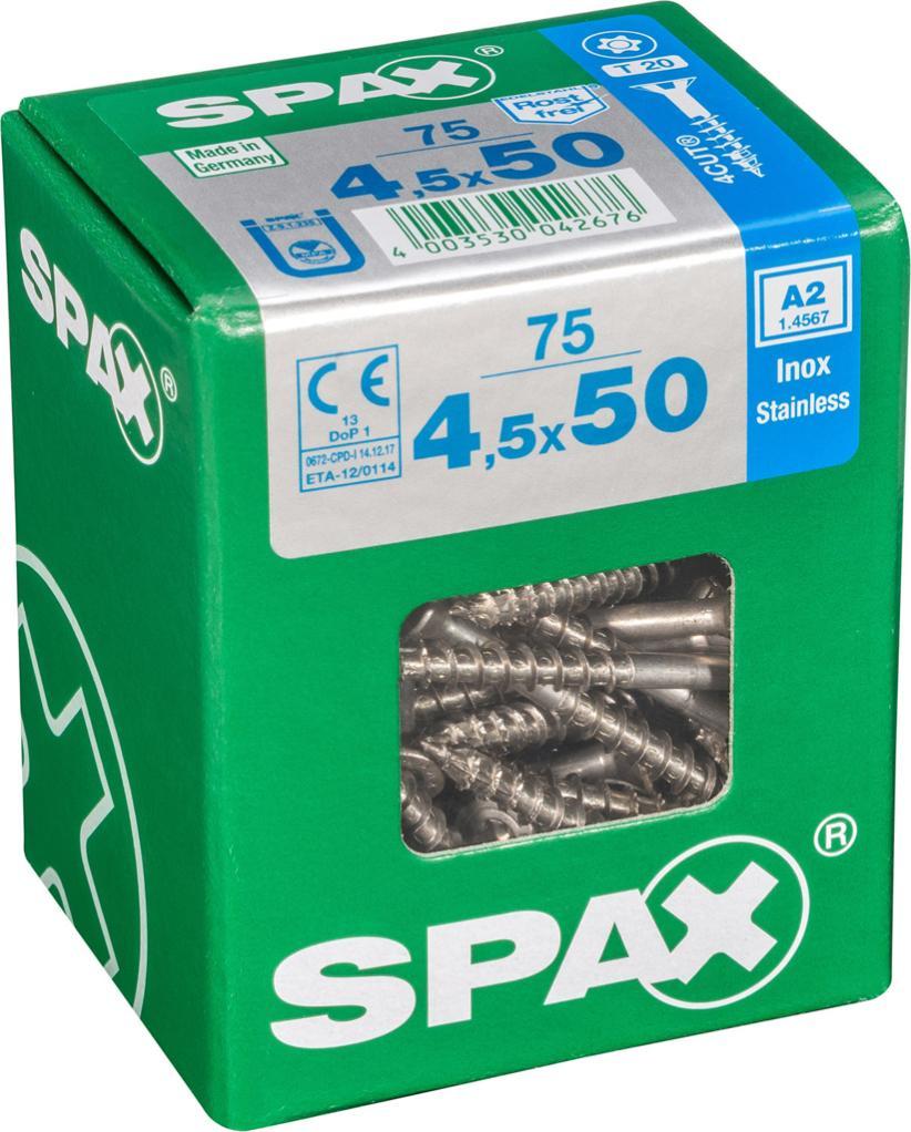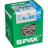 Lot de 75 vis inox tête fraisée torx SPAX, Diam.4.5 mm x L.50 mm