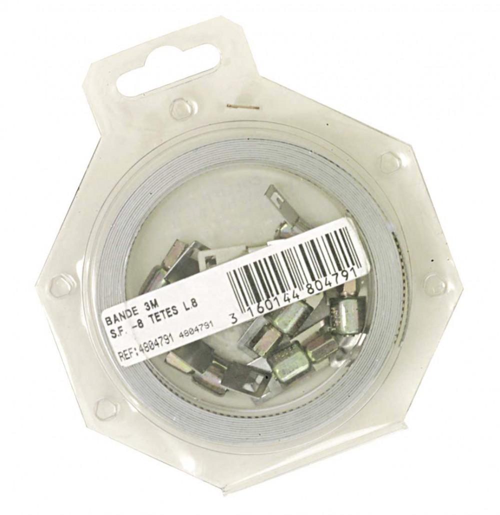 Livré avec 6 têtes. Bande ajourée pour un meilleur serrageUsage du produit: A serrerType de produit: Bande ajouréeMatière principale: AcierGarantie (en années): 3Produit emballé : poids (en kg): 0.03Produit emballé : largeur (en cm): 11Produit emballé : hauteur (en cm): 13Produit emballé : profondeu