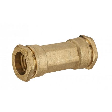 Raccord laiton permettant de réaliser une jonction entre 2 tubes PE, Réseau enterré avant compteur. Serrage extérieur