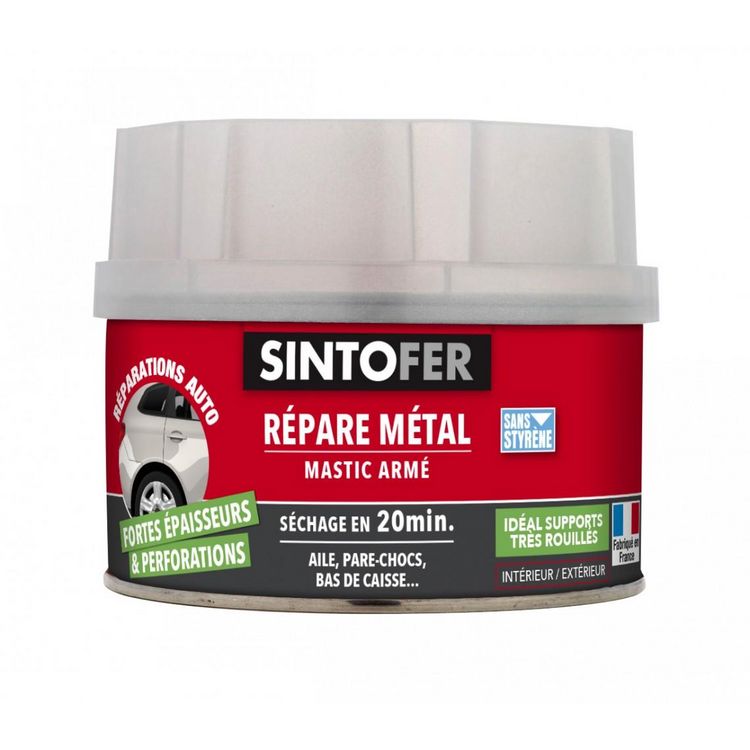 Séchage rapide et sans retrait. Devient aussi dur que le métal. Rendu lisse après ponçage. Inaltérable. Intérieur et extérieur.Idéal pour supports très rouillés. Forte épaisseurs et perforations. Pour les ailes, bas de caisse, pare-chocs.Nom du produit: Mastic et durcisseurMatériaux à coller: MétalU