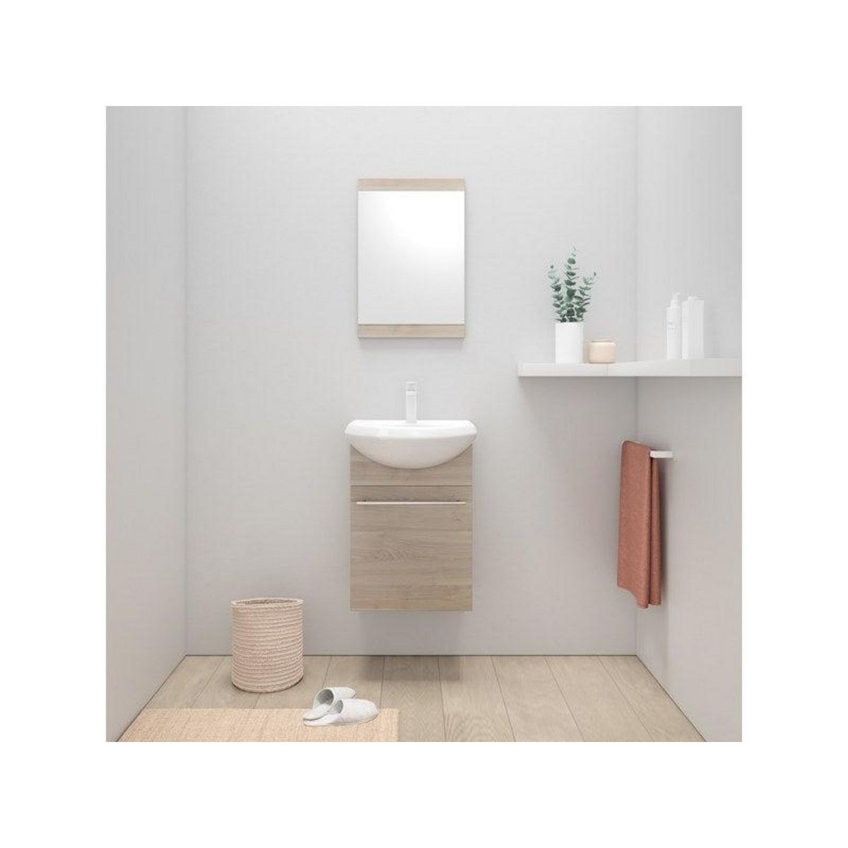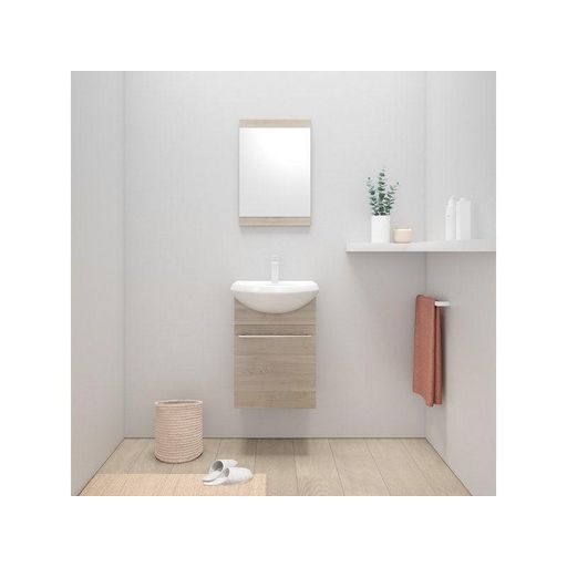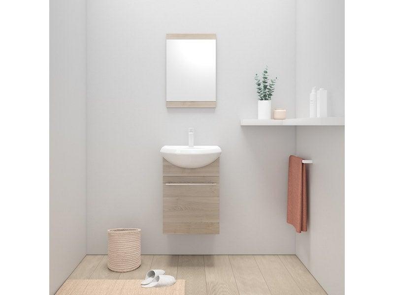 Meuble simple vasque l.42 x H.60 x P.25 cm, imitation bouleau, Aroa
