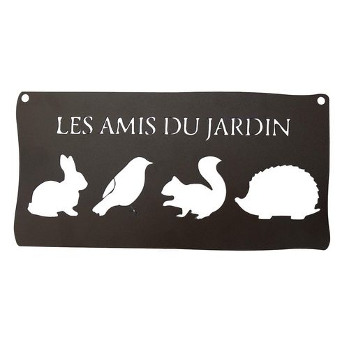 Pancarte décorative en métal Les amis du jardin - 25,5x12,5cm - fer vieilli