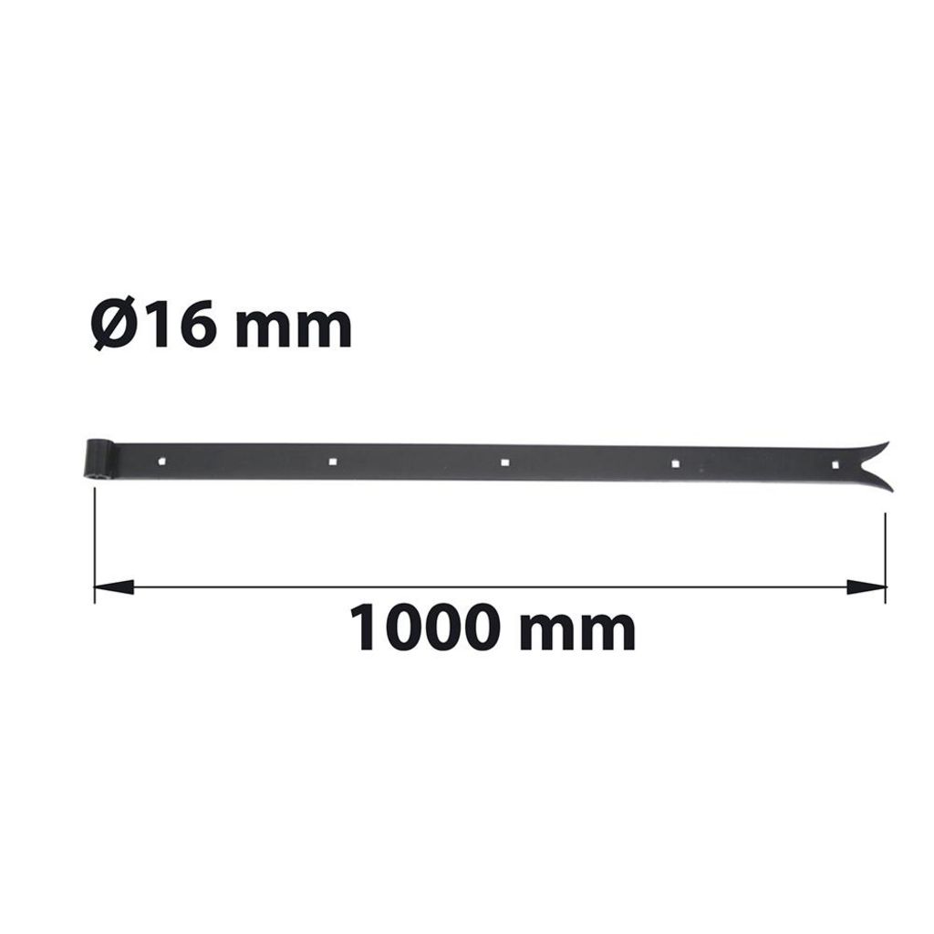 Penture à queue de carpe D16 40X5 L1000 mm acier noir pré-peint