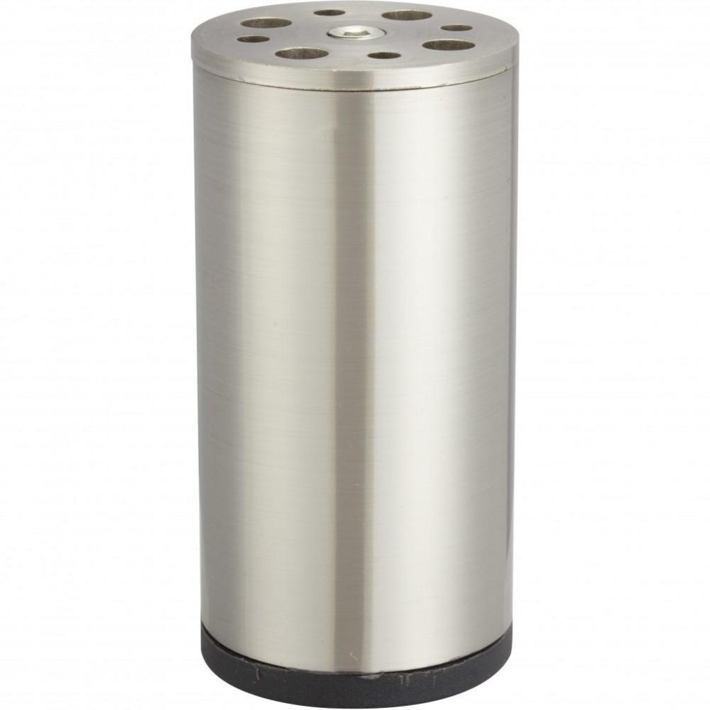 Pied de meuble cylindrique fixe acier brossé gris, 10 cm