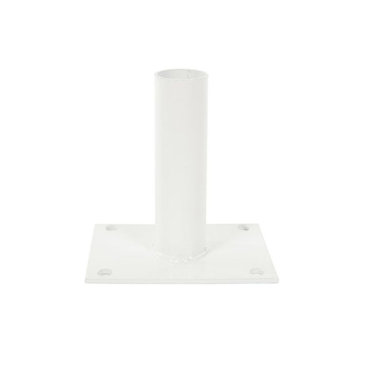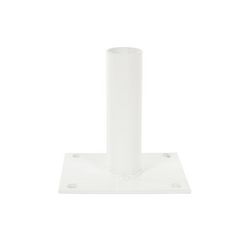 Platines pour poteaux ronds BLANC ø 48 mm. Elles permettent la fixation des poteaux ronds sur un muret ou une dalle en béton.