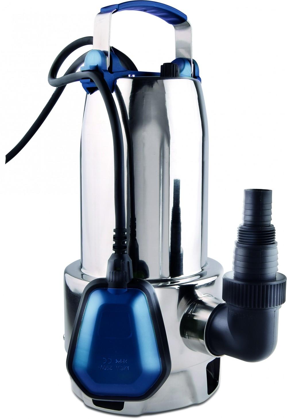 Pompe corps inox - Diamètre max particules 35mm - Poignée rétractable - Raccord inclusUsage du produit: Pour eaux chargéesDébit (en m³/h): 19.5Hauteur de déclenchement minimum (en cm): 71Puissance maximale (en W): 1000Débit maximum (en l/h): 19500Débit à 2 m (en l/h): 17000Débit à 4 m (en l/h): 1500