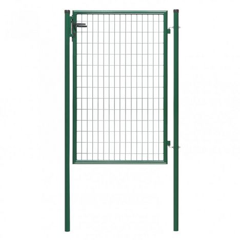 Portillon ECO Vert - Largeur 1m00 x Hauteur 1m50 - Solution économique pour délimiter jardins, potagers,etc - Double sens d'ouverture - Version à sceller - Finition plastifiée sur Brut - Remplissage Maille 100x50mm - Fermeture par serrure. Non adapté à un environnement agressif type bord de mer.