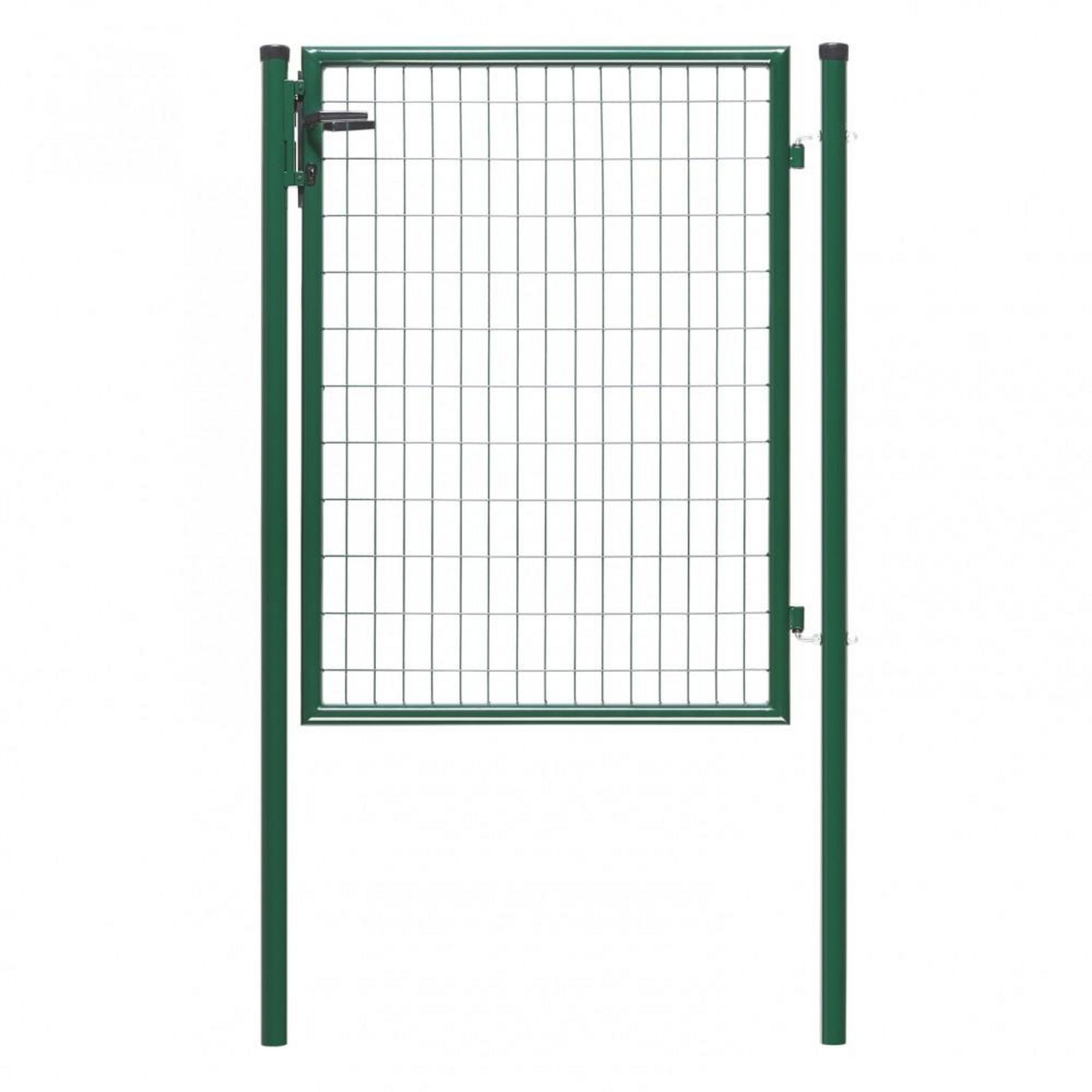 Portillon ECO Vert - Largeur 1m00 x Hauteur 1m25 - Solution économique pour délimiter jardins, potagers,etc - Double sens d'ouverture - Version à sceller - Finition plastifiée sur Brut - Remplissage Maille 100x50mm - Fermeture par serrure. Non adapté à un environnement agressif type bord de mer.