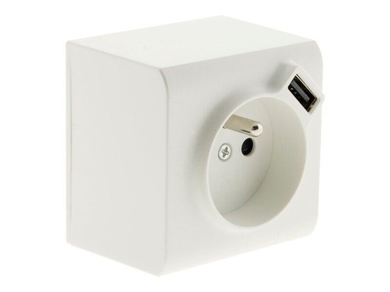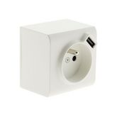 Prise avec terre et prise chargeur usb saillie, complet Besto, blanc