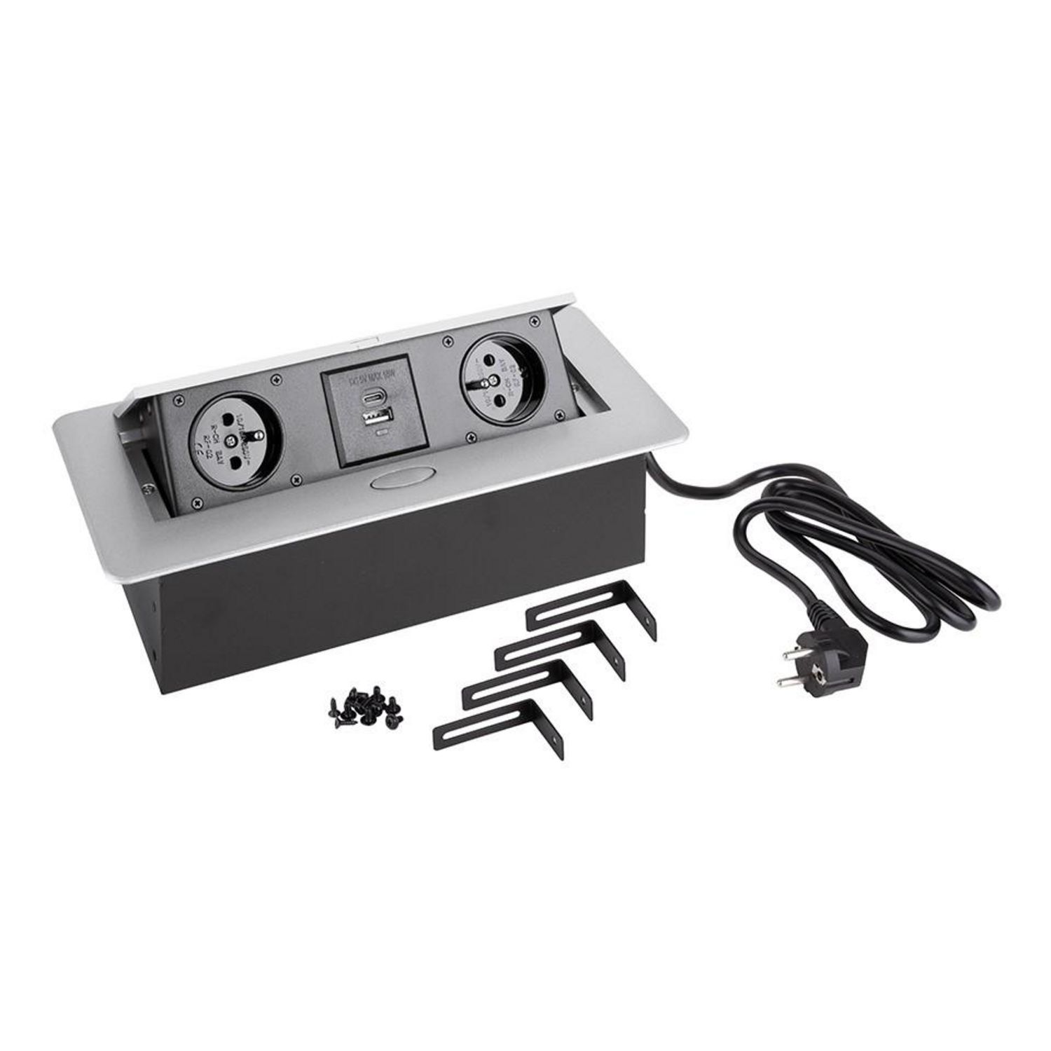 Prise électrique StrongPower 2x 230V, 2x USB A/C, argent, FR