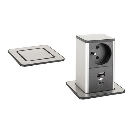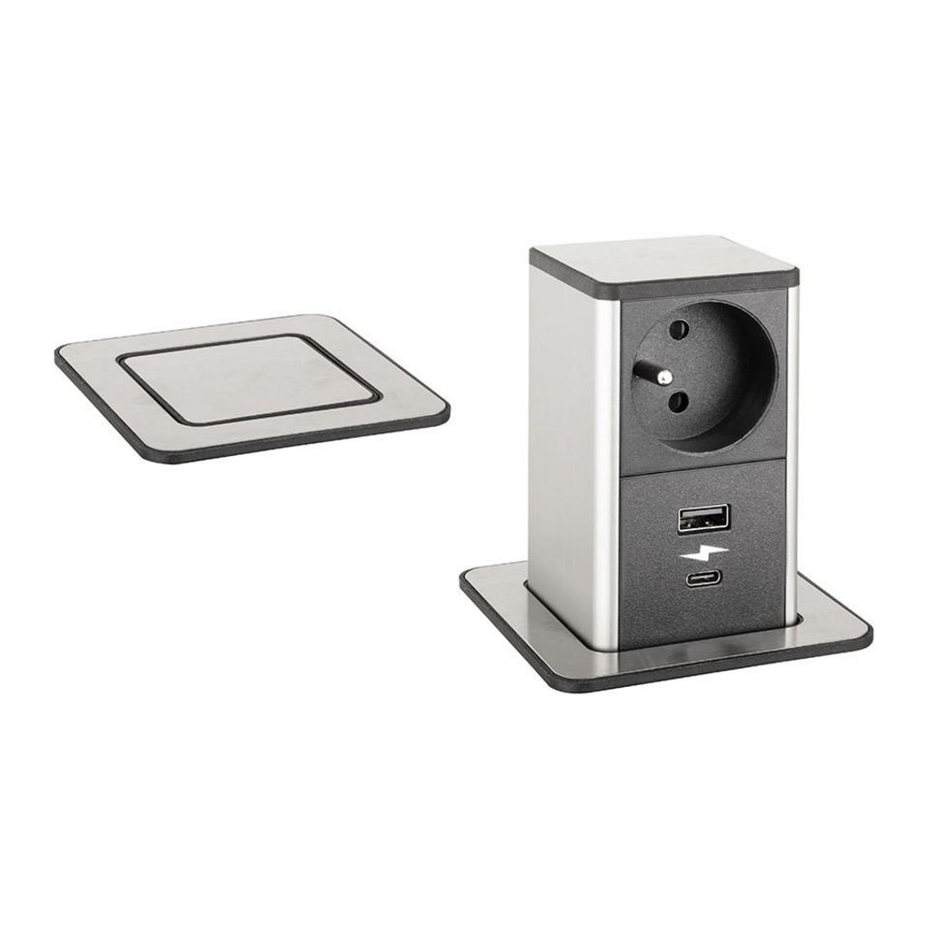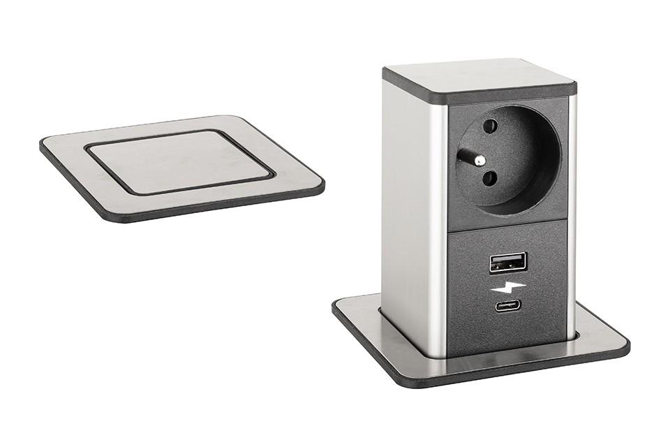 Prise extractible Strong PopUp, acier inoxydable1 x 230V type français avec broche de masse (standard pour CZ et SK), 2x connecteur de charge USB A/C Câble d'alimentation 1,3 mDiamètre du foret 80 mm