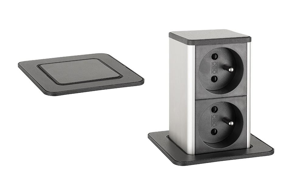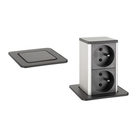 Tiroir coulissant Strong PopUp, noir2 x 230V type français avec broche de mise à la terre (standard pour CZ et SK),Câble d'alimentation 1,3 mDiamètre de perçage 80 mm