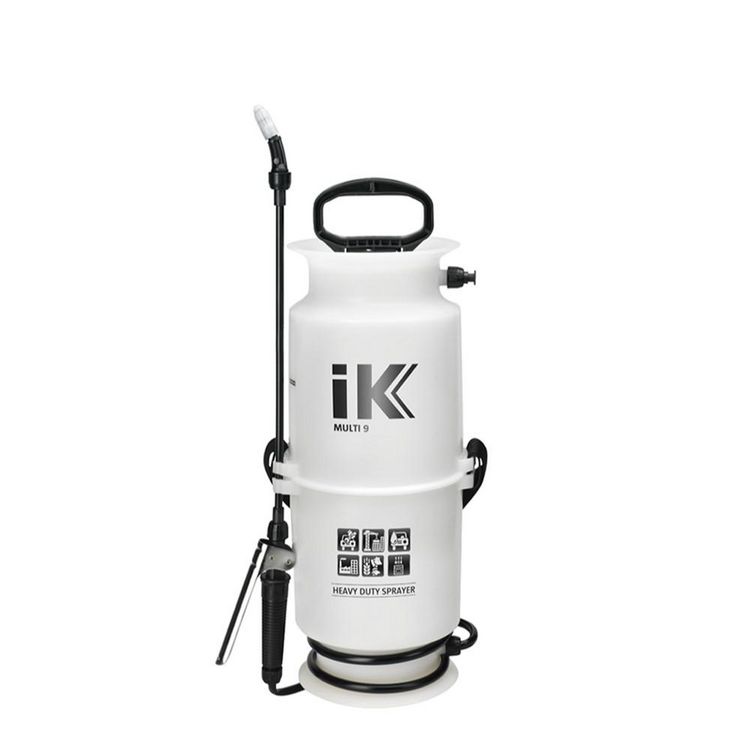 Pulvérisateur industriel IK 9. Fabriqué avec des matériaux résistants afin de pouvoir être utilisé avec différents produits chimiques. Capacité utile 6 litres. Joints en viton.Adaptateur d'accessoires. Lance orientable. Poignée métallique. Filtre sur la lance. Tuyau avec écrou sans raccord ni bride. Réservoir résistant en polypropylène ayant un indicateur de niveau ainsi que les instructions d'utilisation. Niveau de remplissage visible. Enrouleur de tuyaux. Soupape de sécurité extérieure, avec indicateur de surpression en rouge. Possibilité d'y adapter une rallonge de 50 cm Réf. S. Courroie pour le transport en bandoulière. Livré avec un kit avec deux buses et un tuyau supplémentaire. Garantie 1 an.
