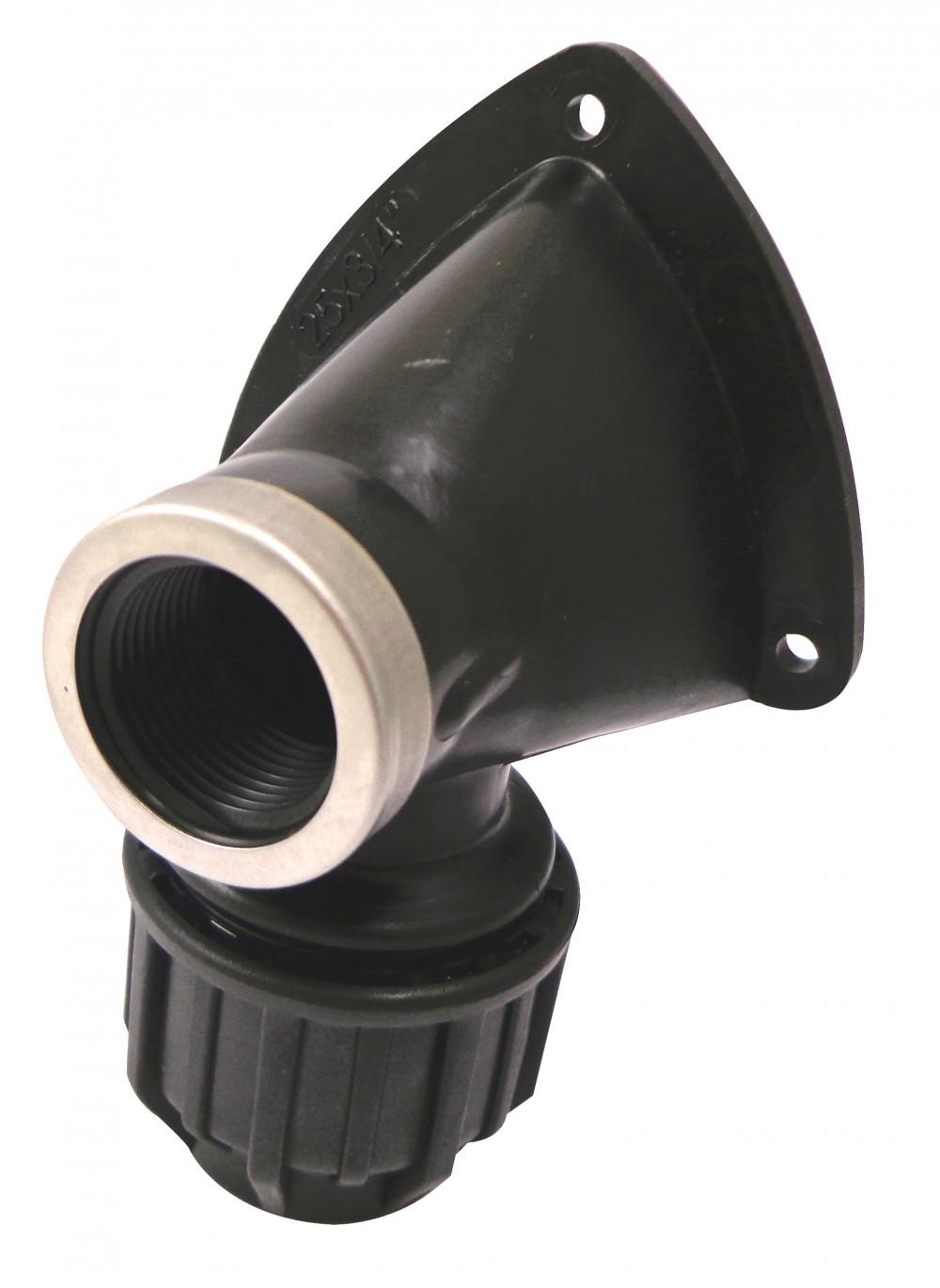 Raccord coudé applique compression plastique F 20 x 27, tube en polyéthylène