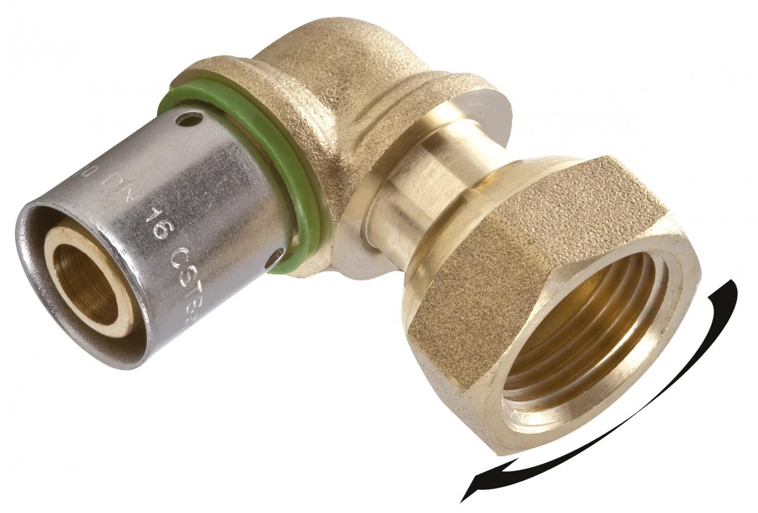 Raccord coudé avec écrou libre à sertir laiton F 15 x 21 pour tube en per