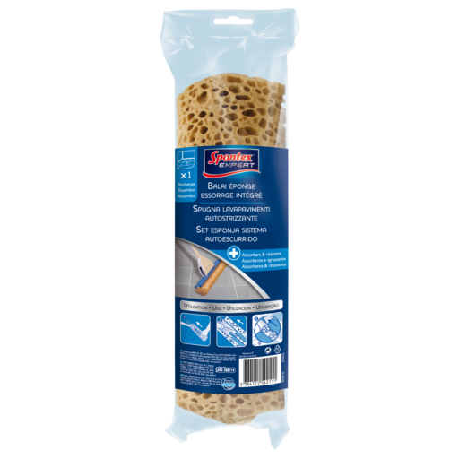 Eponge super absorbante et ultra résistante.Destination: IntérieurLongueur de la tête à balai (en cm): 28Diamètre de la douille (en cm): 2.1Matière principale: EpongeFabrication française: NonProduit emballé : hauteur (en cm): 37.5Produit emballé : largeur (en cm): 9.7Produit emballé : profondeur (e