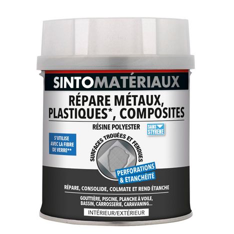 Séchage rapide. Apporte après séchage des propriétés de résistance mécanique et d'imperméabilisation. Intérieur et Extérieur.Résine polyester idéale pour réaliser de grosses réparation sur les métaux, pvc et plastiques. Elle s'utilise avec la fibre de verre pour réaliser de la stratification et comb