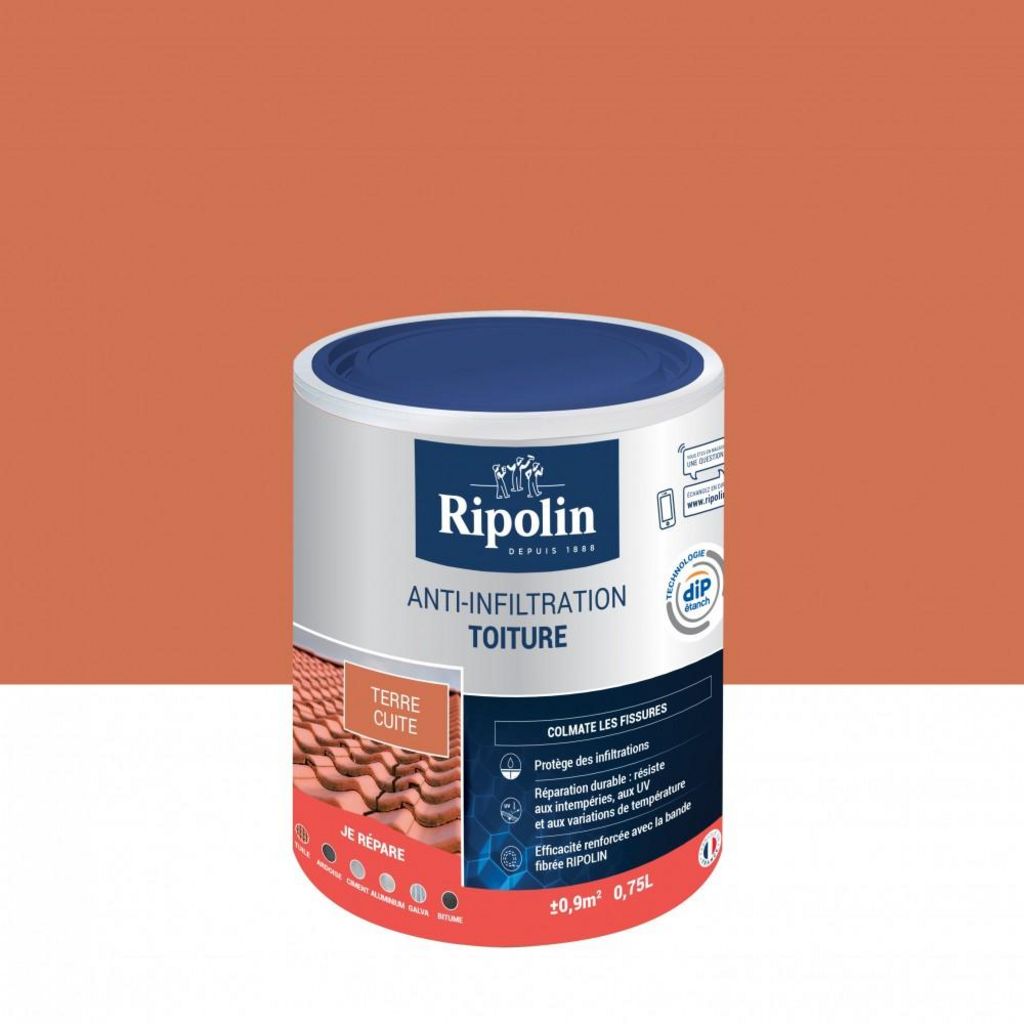 Revêtement d'étanchéité toiture, RIPOLIN Anti-infiltration terre cuite 0,75 L