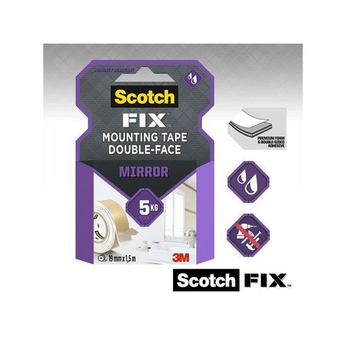 Ruban adhésif double face miroir,3M, L.1.5 m x l.19 mm