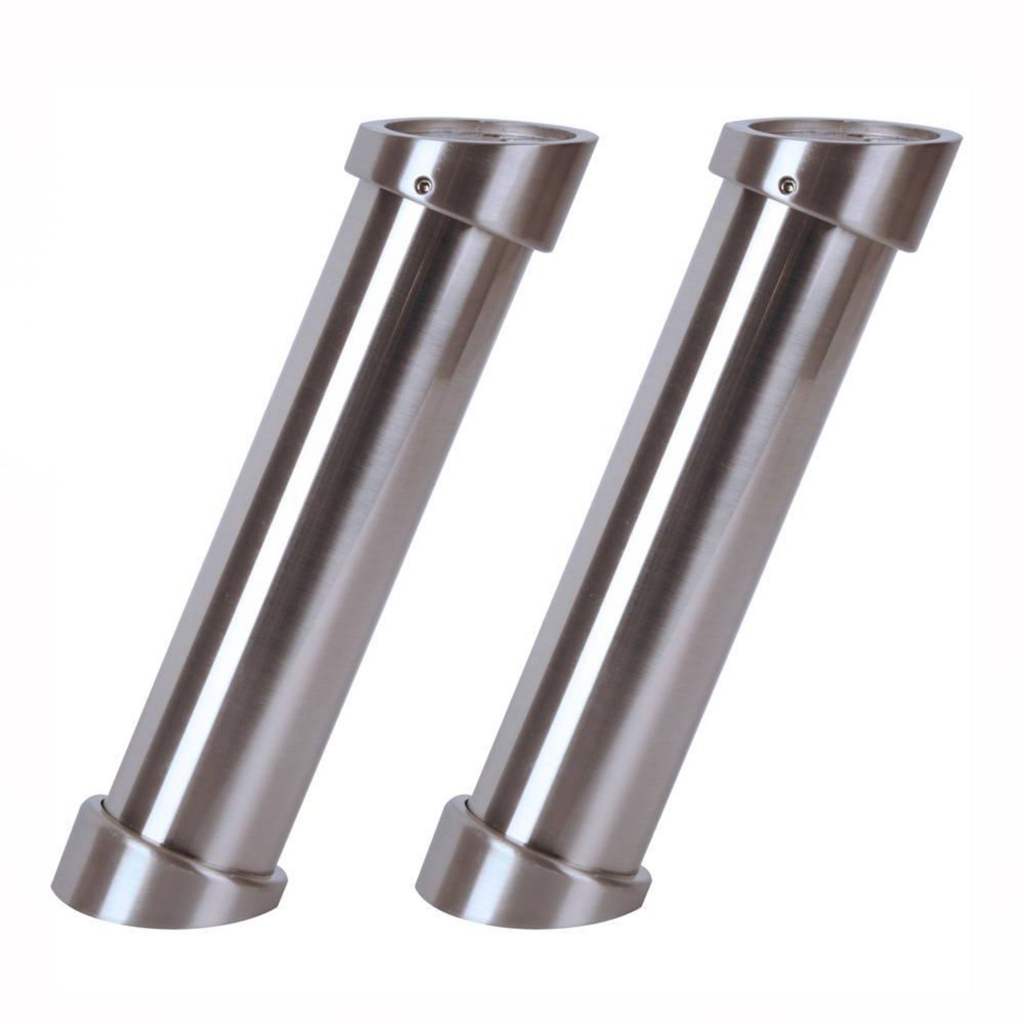 Lot de 2 supports de Snack ronds, Lux, en Aluminium, finition Inox. Ces supports discrets et design sont légèrement inclinés et mesurent 21 cm de hauteur. Ils vous permettront de réaliser un coin snack/bar dans votre cuisine tout en gagnant de la place.