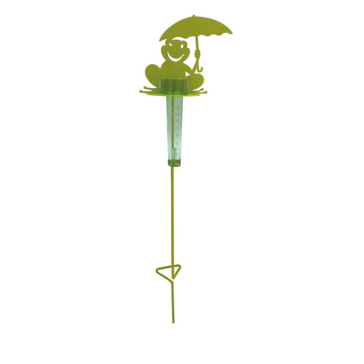 Support Pluviomètre à piquer grenouille vert anis - H. 1,16 m - Acier époxy