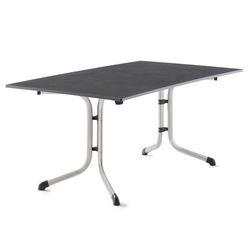 Table pliante 165 x 95 cm décorée d'un plateaux en Vivodur®.Résistant à la chaleur, aux intempéries, aux acides, aux chocs et au gel. Ce sont les caractéristiques particulières du plateau de table Vivodur ®. Le cadre élégant avec un pied réglable en hauteur offre une stabilité optimale. La haute qua