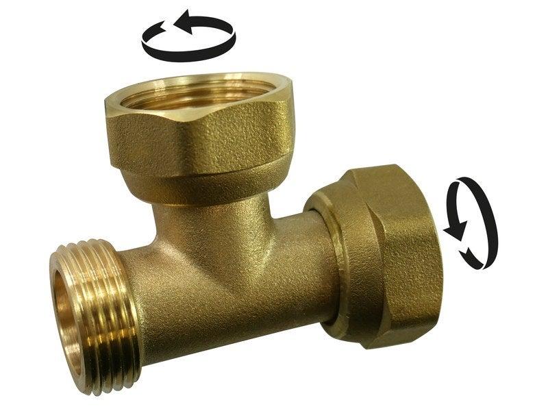 Té double m/f à visser laiton F 15 x 21 pour tube en cuivre