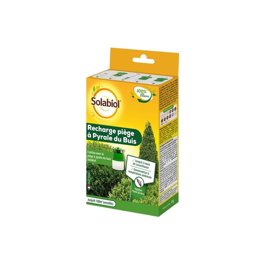 La recharge Pyrale du Buis est adaptée spécifiquement au piège Solabiol et permet d&rsquo,attirer et de piéger les papillons mâles permettant ainsi une surveillance qui sert à déterminer le stade de développement, la période d'activité des insectes et ensuite le niveau d'infestation. Elle permet de surveiller pendant 3 mois jusqu&rsquo,à 180 m2 dans le cas d&rsquo,une infestation normale. Elle se conserve à température ambiante entre 15°C à 25°C.