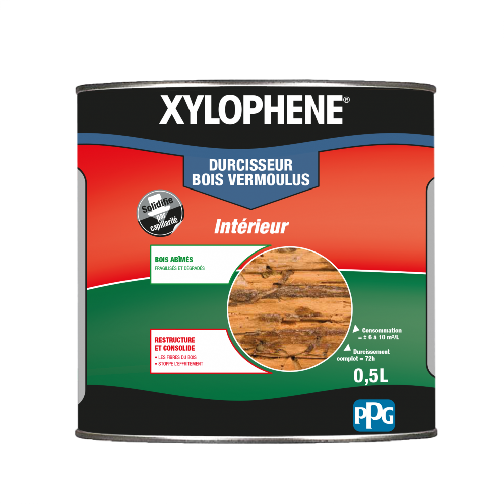 Xylophene spécial bois vermoulus est un durcisseur de fibres de bois destiné à restructurer et consolider le bois en profondeur. Ce produit stoppe l'effritement et est destiné aux bois abîmés, dégradés et fragilisés, pour tous les bois : pin, noyer, chêne, sapin, merisier, cerisier.
