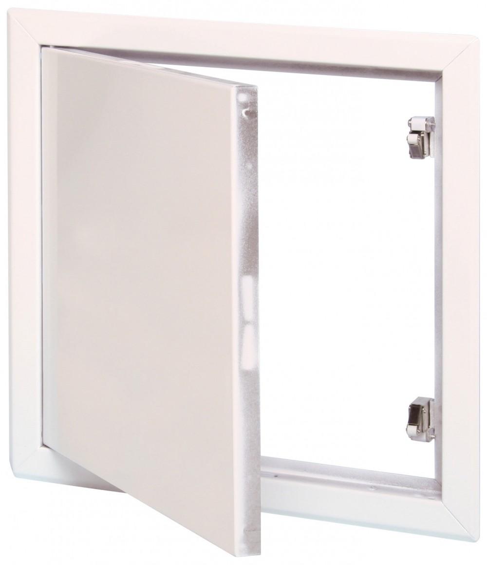 Trappe d'accès aux vides techniques des murs et plafonds ou aux gaines techniques, fixations intégrées, revêtement blanc laqué, ouverture facile et fermeture facile, existe en 30x30cm, 40x40cm, 50x50cm, 60x60cm, 80x80cm