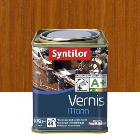 Protection exceptionnelle aux UV, sels marins et écarts de température.Nom du produit: Vernis marinCouleur ou teinte du bois: AmbreAspect: SatinéDestination: Terrasse et jardinSupport de destination: Volet, porte, fenêtre, abris de jardin, portail, bardage...Marque du produit: SYNTILORContenance (en