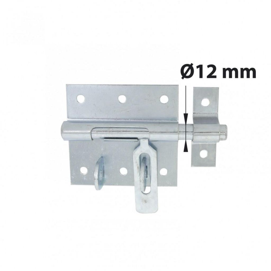 Verrou de box idéal pour fermer abri de jardin, caisse, portillonFinition du produit: ZinguéMatière principale: AcierLargeur (en mm): 116Hauteur (en mm): 83Epaisseur (en mm): 1Type de pêne: RondAvec voyant: NonDestination: Pour portails battantsFixations fournies: NonDimension de la platine (HxL) (e