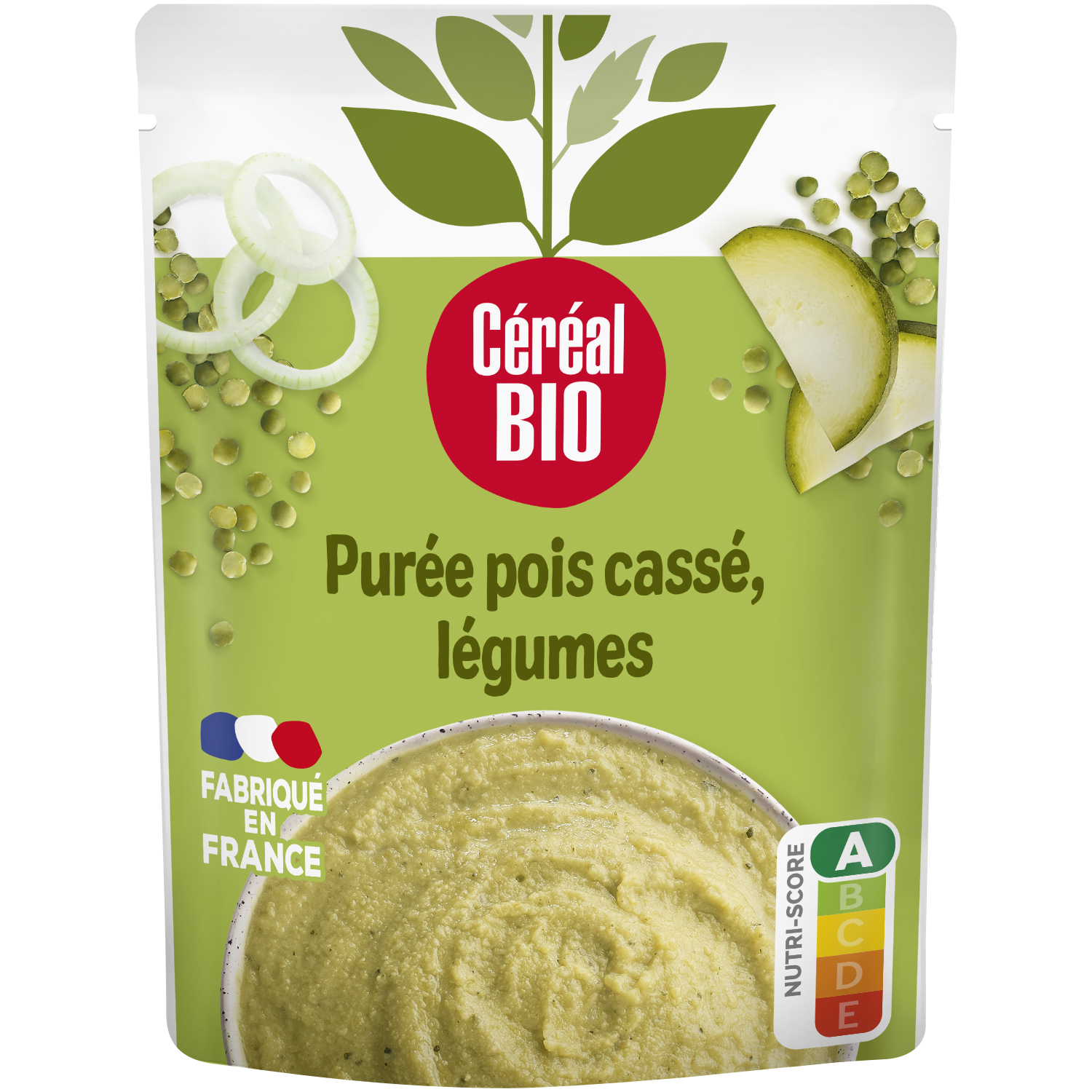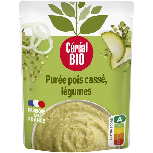 Purée de pois cassés et de légumes, issue de l'agriculture biologique