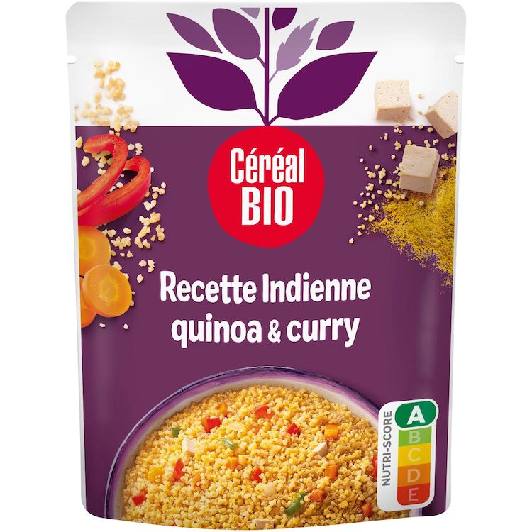 Dégustez notre recette indienne quinoa, curry & tofu : un plat végétal inspiré des saveurs indiennes prêt en quelques minutes. Ce plat est cuisiné avec du quinoa, du tofu, du boulgour de blé et de savoureux petits légumes. Le tout est délicatement relevé de curry pour une recette parfumée, colorée et équilibrée. Ce mariage de céréales et de tofu vous offre un plat source de protéines végétales et riche en fibres. Proposé en sachet express, cette recette est idéale à savourer au bureau ou à la maison ! SOURCE DE PROTÉINES ET RICHE EN FIBRES / FABRIQUÉ EN FRANCE / VÉGÉTAL