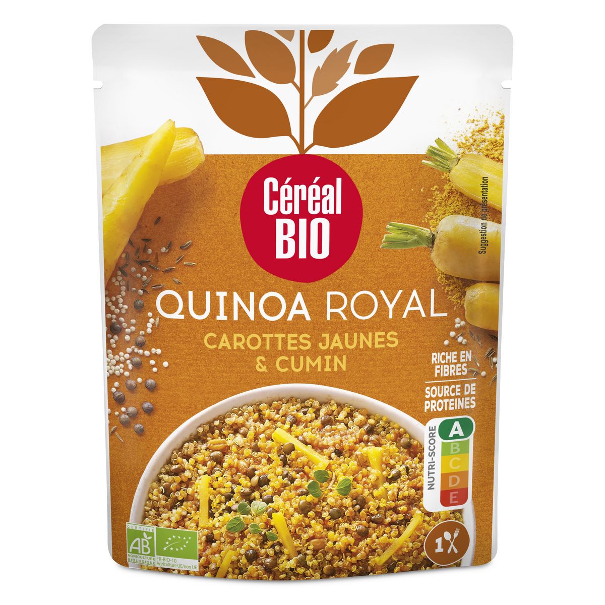 Quinoa royal carottes jaunes, lentilles vertes, cumin, issu de l'agriculture biologique