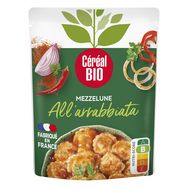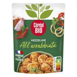 Pâtes alimentaires végétales farcies, à la sauce tomate, issues de l'agriculture biologique.