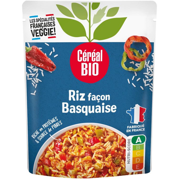 Profitez de votre pause repas pour déguster ce riz façon basquaise. Un plat végétal prêt en 2 minutes au micro-ondes, nutriscore A, riche en protéines et source de fibres, de quoi manger plus sainement tout en vous faisant plaisir !