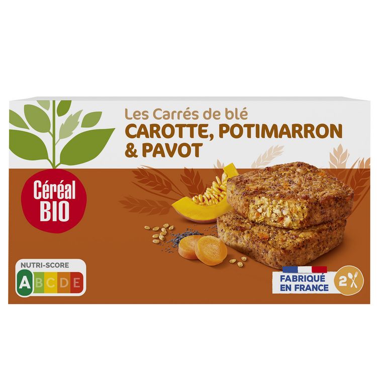 Tendres carrés de blé carotte potimarron & pavot bio