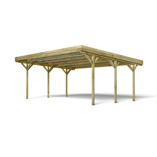 Carport adossé toit plat- Bois traité autoclave