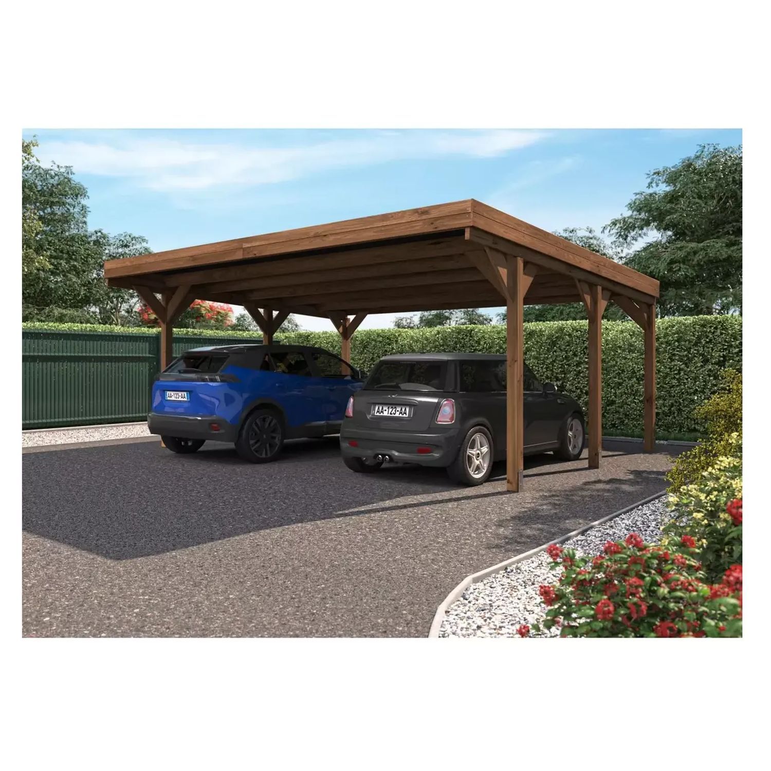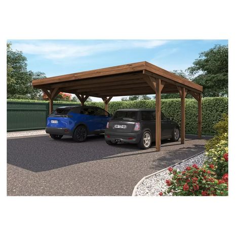 Carport toit plat - Bois traité autoclave - 2 voitures - 30,9m² - VICTOR