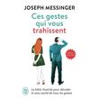 La manière dont vous téléphonez, croisez les jambes ou les bras, utilisez vos doigts en révèle plus sur vous que vous ne l'imaginez. Tous ces gestes, en apparence anodins et accomplis instinctivement, reflètent votre état émotionnel et trahissent vos pensées réelles. Ce guide pratique et illustré vous apprendra à interpréter les gestes de vos interlocuteurs. Il vous révélera comment détecter le mensonge ou la trahison et comment évaluer l'anxiété, la confiance ou la séduction. Décodeur gestuel complet, Ces gestes qui vous trahissent vous donnera une longueur d'avance sur les autres.