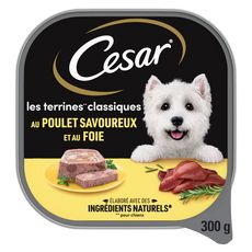 Les barquettes pour chien Cesar® Les terrines** classiques sont disponibles en format 300g.