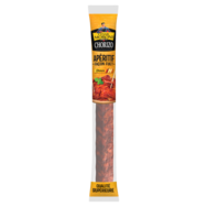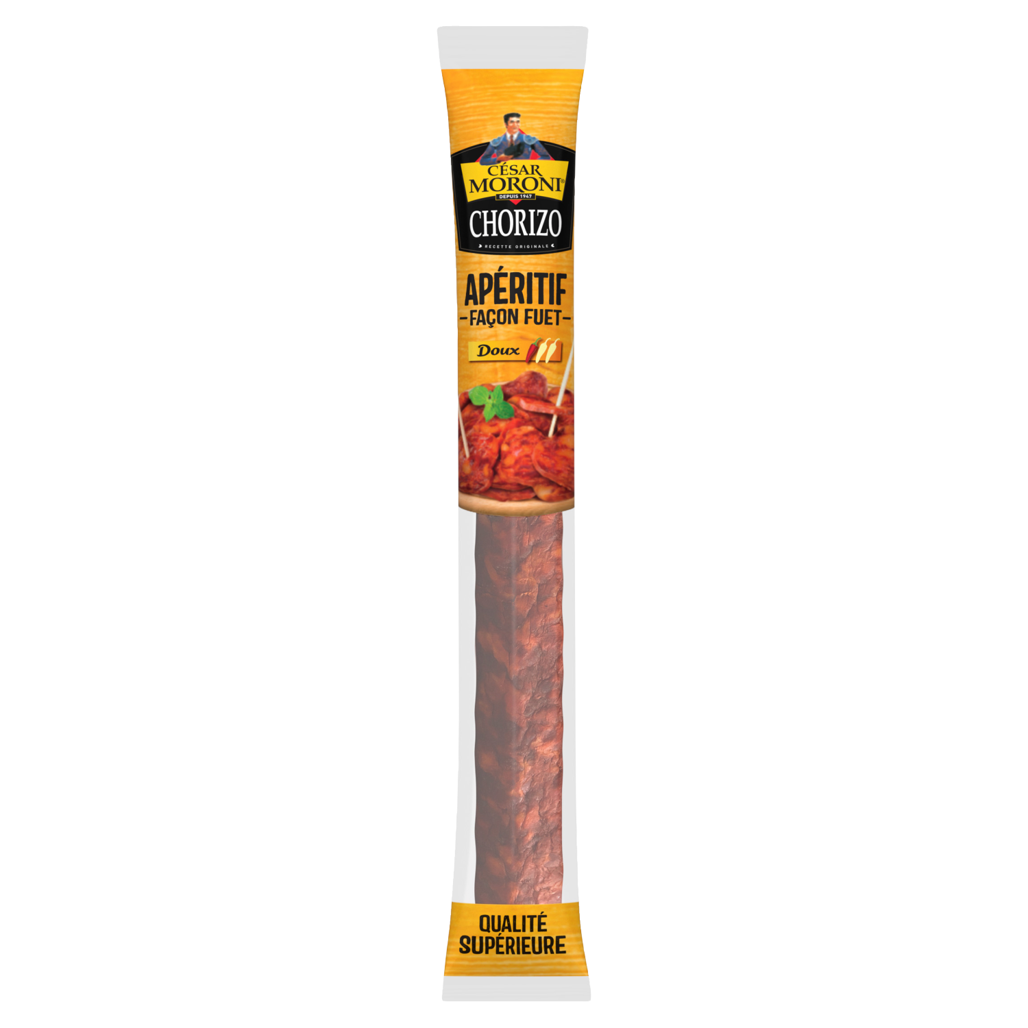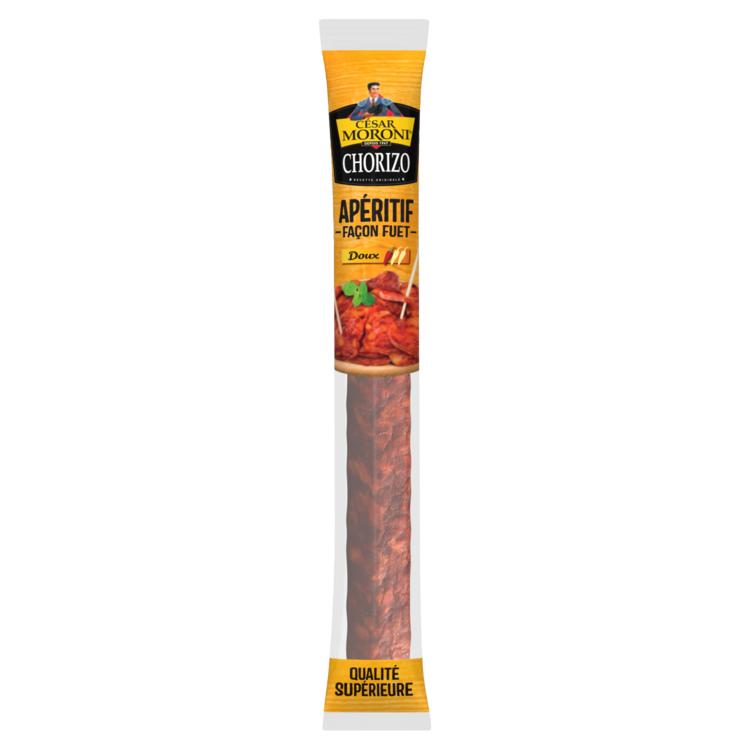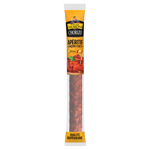 Ingrédients : Viande de porc (origine U.E.), piments d’Espagne séchés en poudre 4,4%, sel, sucre, épice, conservateurs : ascorbate de sodium, nitrite de sodium et nitrate de potassium, ferments. Boyau naturel de porc. Présence possible de lactose. 155 g de viande utilisés pour la préparation de 100 g de produit fini.
