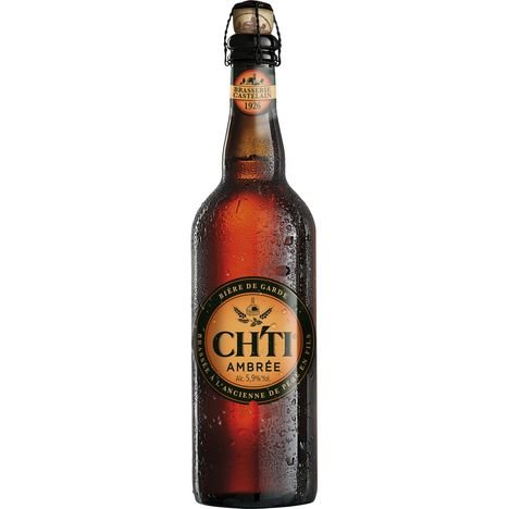 CH'TI la bière de Garde qui défie le temps: la marque référence de bières de spécialité de Garde pour accompagner les amateurs de bière ambrée: disponible en 75cl, format de partage. Attaque agréable et rafraîchissante. La CH’TI Ambrée est une bière onctueuse qui a du corps. L’équilibre est harmonieux entre les malts et les houblons. De subtiles notes de noisettes grillées et de sucre roux se distinguent au second plan. C’est une bière élégante qui offre une amertume discrète en finale. Ch'ti bière ambrée 5,9° -75cl