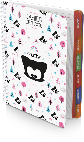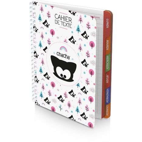 En savoir +Cahier de texte blanc Chacha. Du lundi au samedi avec onglet. Dimensions : 15x21cm