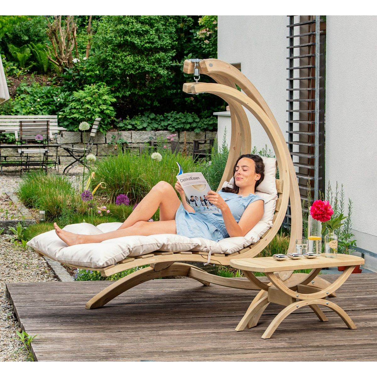 Chaise Longue Swing + Support en bois traité