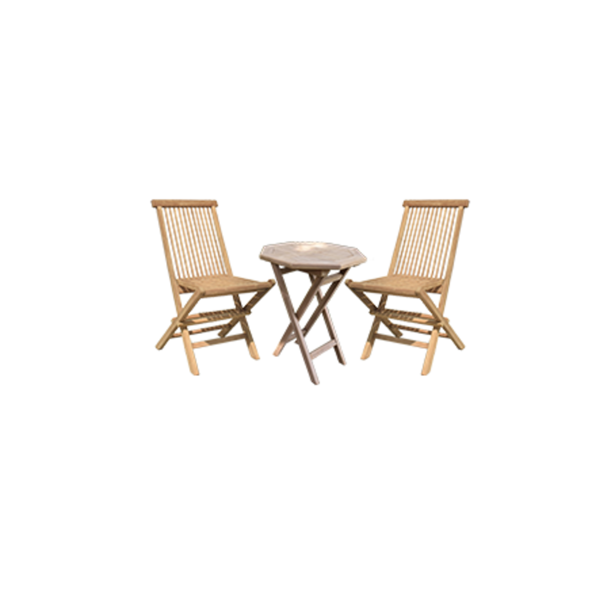 Ce salon de jardin 2 places est intégralement en Teck, ce qui garantit un produit robuste et résistant aux intempéries. Cet ensemble authentique est fourni avec 2 chaises de jardin et une table octogonale pliante pouvant accueillir 2 couverts. Il vous apportera une touche de convivialité sur une terrasse, dans un jardin ou sur un balcon.