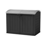 Idéal pour ranger et stoker vos outils, les jouets de vos enfants ou encore vos coussins d&rsquo,extérieur, le coffre de rangement extérieur Multifonctions en résine est la solution parfaite pour conserver votre contenu face aux intempéries et à l&rsquo,humidité avec son système de ventilation. D&rsquo,une capacité de 2000 L, ce coffre en résine vous permettra également de stocker vos poubelles et vos vélos grâce à ses deux portes à l&rsquo,avant. Facilité d&rsquo,utilisation avec l&rsquo,ouverture de son couvercle assistée par des vérins, vous pourrez aussi installer vos circuits de filtration de piscine dans cet espace de rangement pour les réunir, les protéger et réduire leur débit sonore.