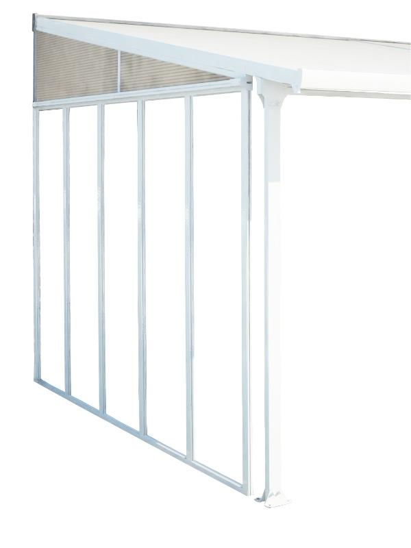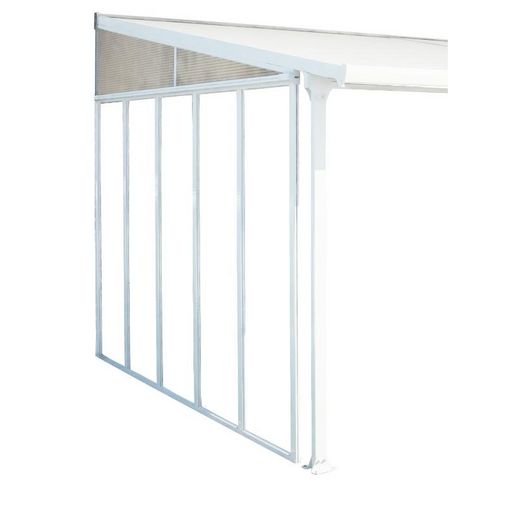 Ce panneau latéral blanc pour toit terrasse est le complément idéal des toits terrasse de la marque Chalet et Jardin de 3m de profondeur. Il permet efficacement de se proteger du vent et de la pluie. Il est possible de l',installer des 2 cotés du toit terrasse. Il est facile à monter soi-même et ne nécessite pas d',entretien.